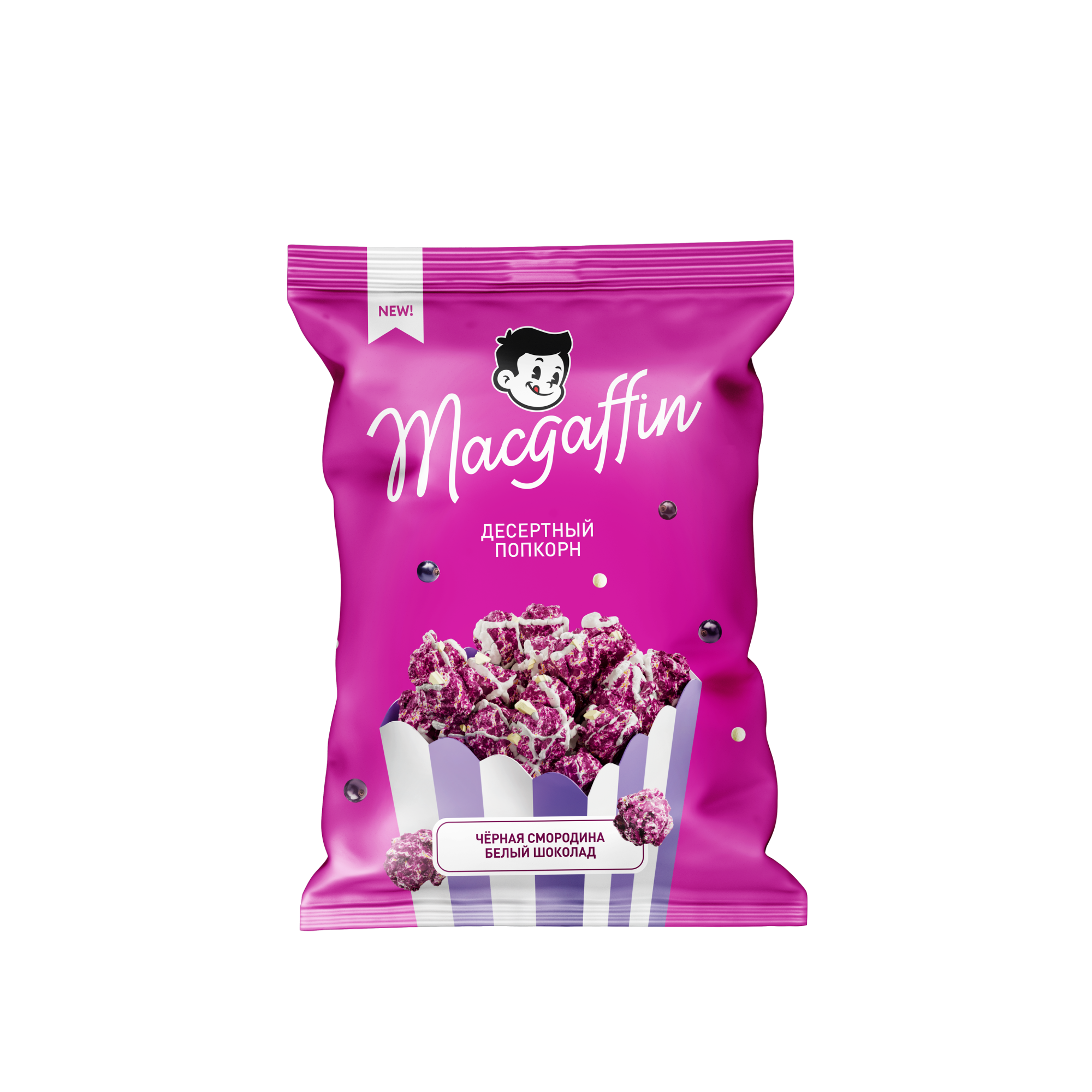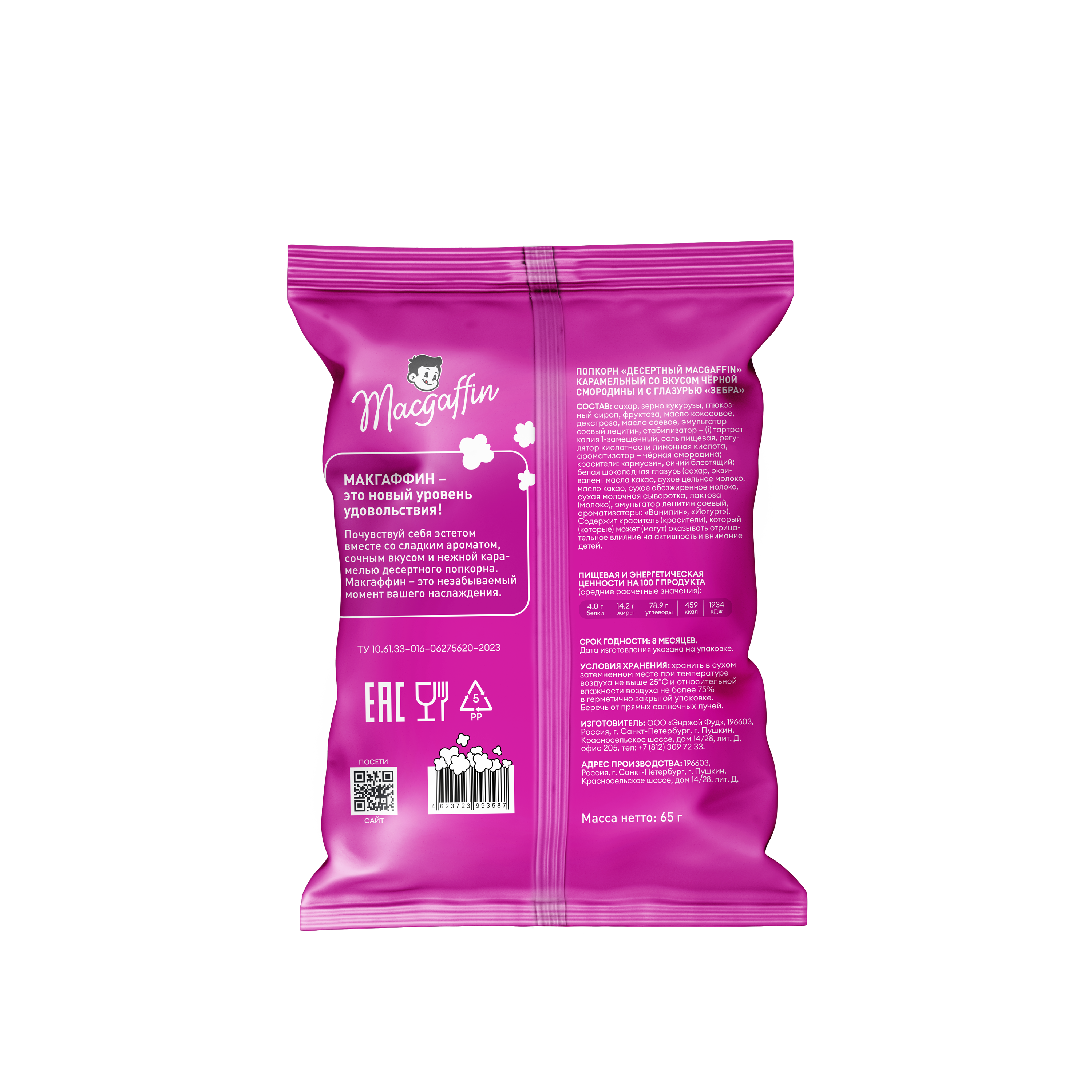 Попкорн карамельный Macgaffin со вкусом чёрной смородины и глазурью "Зебра"/флоупак